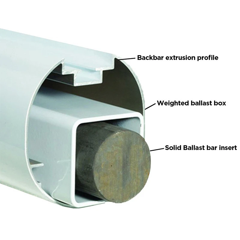 - Aluminium profile Backbar with integral weight insert and ballast.
